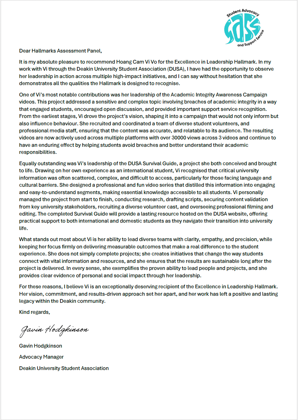 With support from the DUSA Advocacy Team, I led the development of a five-part video series, where each video tells a real story. I interviewed students who, like me, never intended to breach academic integrity, but found themselves pushed beyond their limits; mentally, emotionally, and academically. These stories are raw, honest, and deeply human. They are a reminder that people who breach academic integrity are not always bad students, but rather good students in difficult situations.